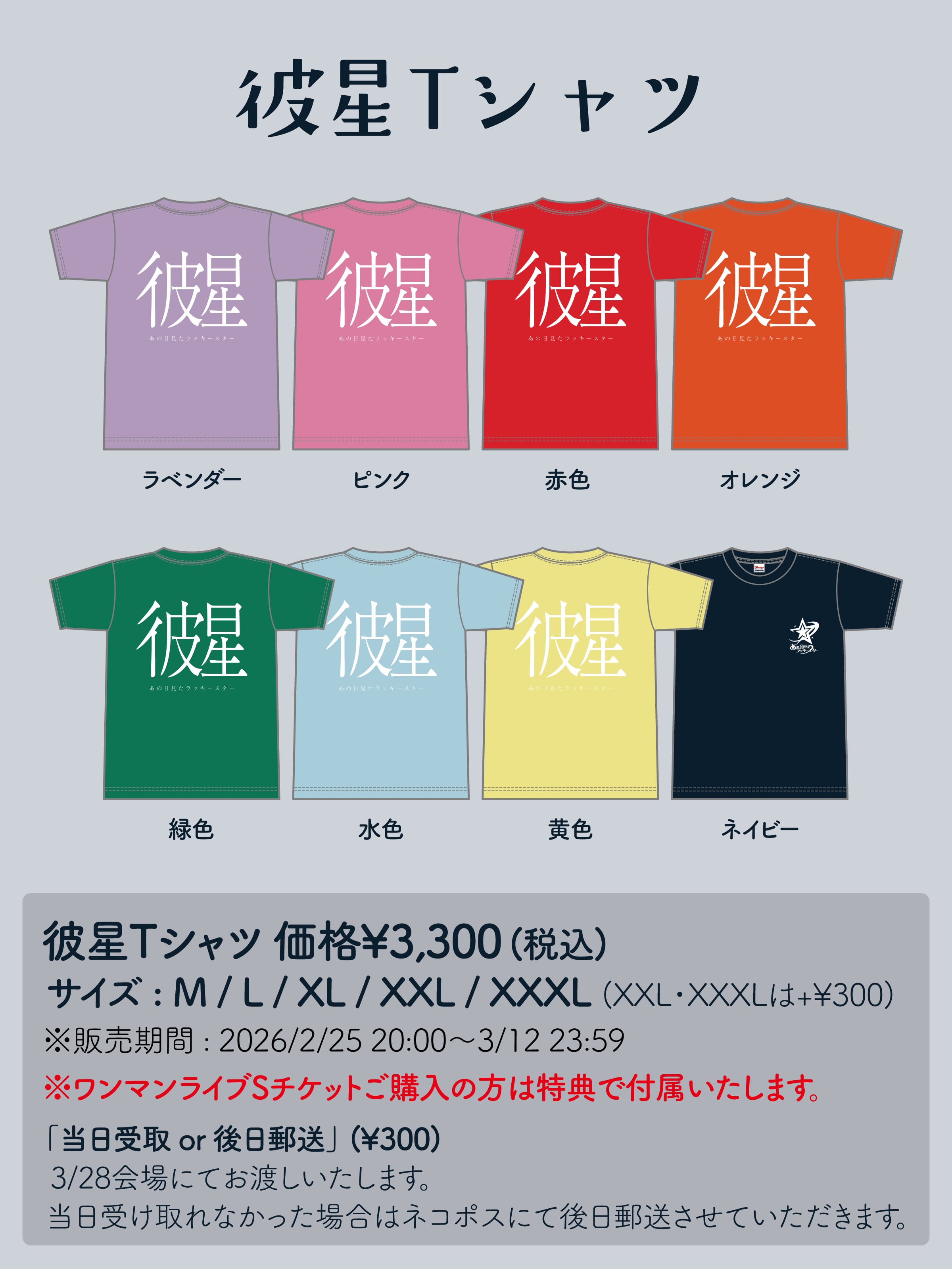 彼星Tシャツ ※ワンマンライブSチケットご購入の方は特典で付属いたします。